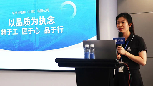 會上,辛格林電梯總監羅小雯就品質月活動總結發言。羅總監以組織一場互動游戲引入主題,希望員工們明白到品質與每一個部門、每一個崗位息息相關,環環相扣。追求品質,每個人都應當做到拒絕雙重標準。