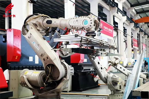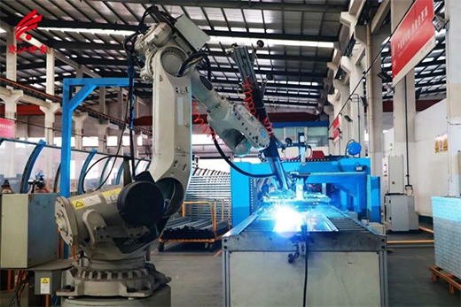 標準門板生產線上的焊接、碼垛機器人正在作業。