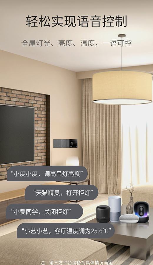 支持語音交互功能,目前智匯云已與華為、VIVO、小度、天貓精靈、小京魚、騰訊小微、科大訊飛、思必馳等各大第三方語音控制平臺成功對接。