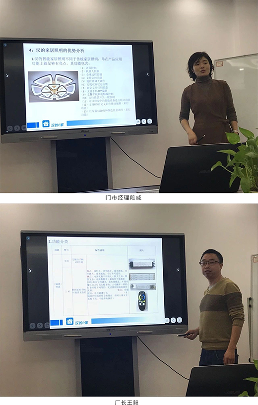 為了更好地熟悉和推廣漢的智能家居照明產品,12月20日,漢的家居照明培訓課在廠部正式開課,由漢的智慧家居照明門市經理段威為大家帶來專業的家居照明知識,針對時下的熱點話題——智能家居照明展開系統的教學和分析,其中包括《這個時代流行燈飾》、《漢的家居照明的結構組成》、《如何推廣漢的家居照明》、《家居照明工作對接》等課題,讓學員們在學習的過程中掌握知識技能,學以致用,知行合一,在未來的工作中能將更好的產品體驗和服務理念帶給每一位用戶。