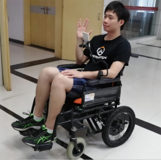 據介紹,第一代智能輪椅由可控制輪椅的頭戴設備和健康監測系統組成。使用者通過點頭、左右轉頭以及頭部后仰控制輪椅前后左右移動,同時輪椅自帶健康監測系統、配備遠程操控系統,家屬可通過配套手機軟件獲取使用者健康數據以及輪椅使用情況,基本滿足了四肢殘障人士的出行需要。