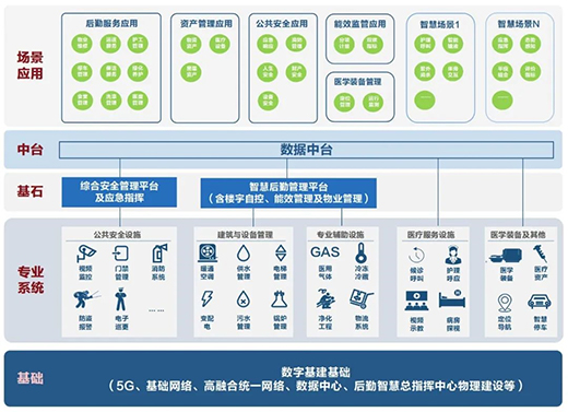 運用Design Thinking頂層設計思維模式,美控與院方共同在管理系統邏輯結構上,采用專業系統層、集成中臺層和應用服務層三層架構的設計。專業系統層是智慧醫院的信息化基礎,系統集成中臺是整個智慧管理系統的支柱,應用服務層是智慧化具體功能應用的呈現。