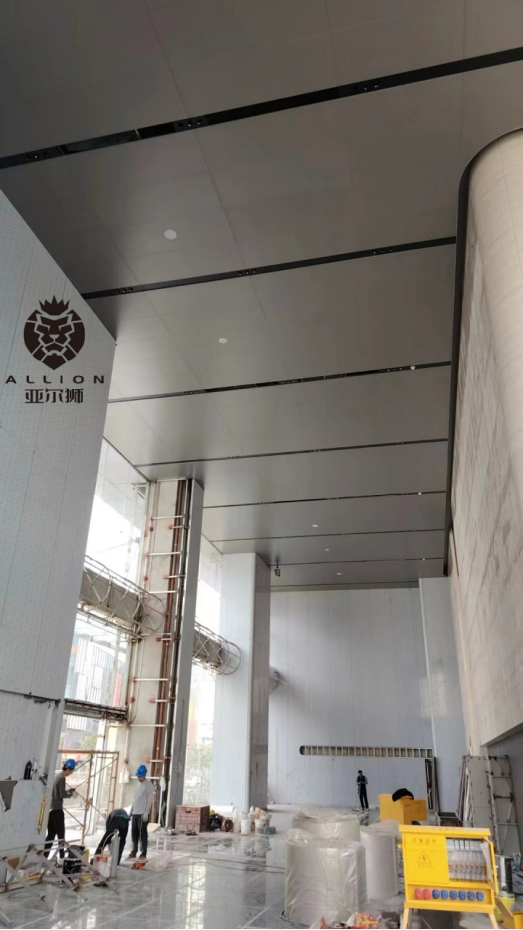 高端鋁板打造國際范候梯間,13米挑高的藝術大堂由陶瓷氟碳天花鋁扣板精心雕塑,極簡建筑物外墻則由簡約鋁單板構建。每一處都彰顯亞爾獅的精工之作,為ITC國際科創中心增添了獨特的空間魅力。