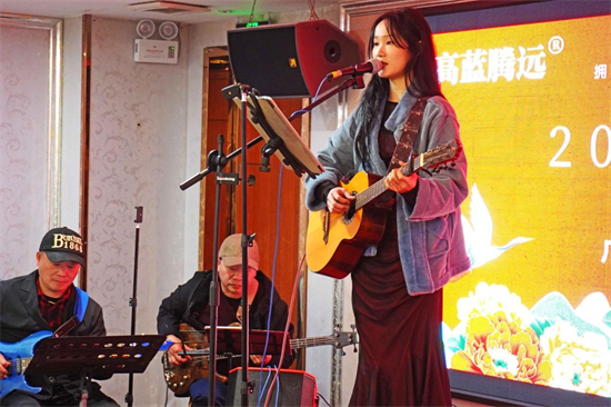 隨著魏總一曲激昂的《午夜怨曲》獻唱,年會的氣氛瞬間被點燃。歌聲中透露出的堅定與執著,仿佛是高藍騰遠人不斷前行的寫照。接下來的節目更是精彩紛呈,孔穎欣帶來的《一人有一個夢想》和《下一站天后》唱出了每個人心中的夢想與追求;藍騰嘉賓的真情獻唱《我應該》將整個盛會推向高潮。