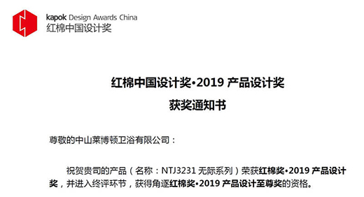 萊博頓NTJ3231無際系列淋浴房從4075件來自海內(nèi)外的參評(píng)作品中脫穎而出,獲得紅棉獎(jiǎng)·2019產(chǎn)品設(shè)計(jì)獎(jiǎng)的殊榮,并進(jìn)入終評(píng)環(huán)節(jié),獲得角逐紅棉獎(jiǎng)·2019產(chǎn)品設(shè)計(jì)至尊獎(jiǎng)的資格!