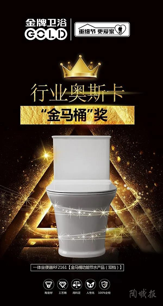 此前,金牌衛浴更是憑借一體坐便器(節水產品(雙檔)),榮獲行業“奧斯卡”金馬桶獎。