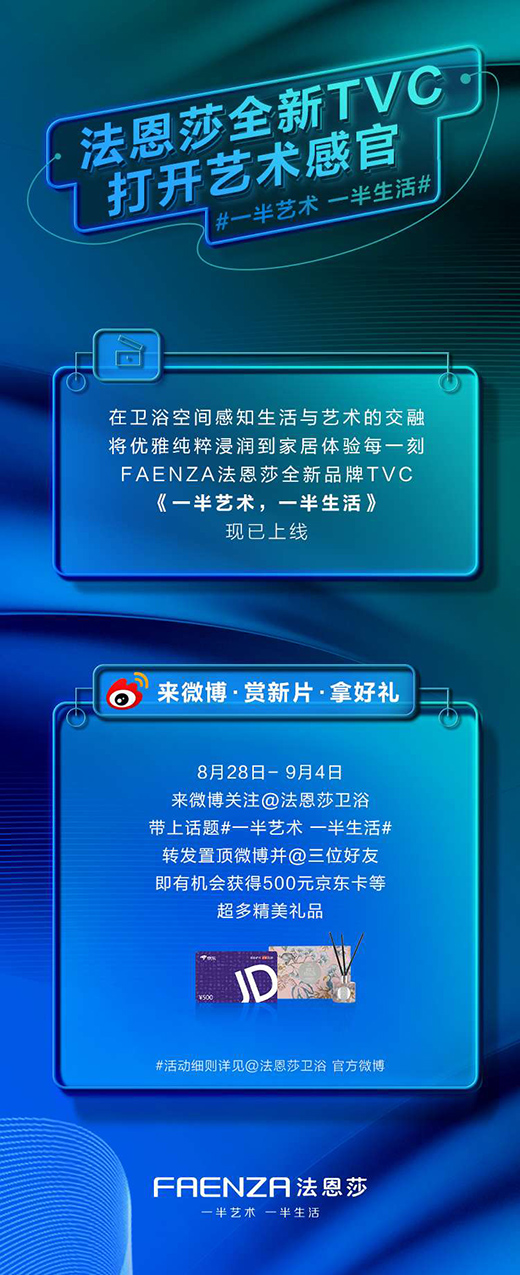 深植品牌基因的意式美學,專注對藝術生活不斷探求,FAENZA法恩莎將藝術靈感融于精工匠造,于全新TVC《一半藝術 一半生活》中極致盡顯。