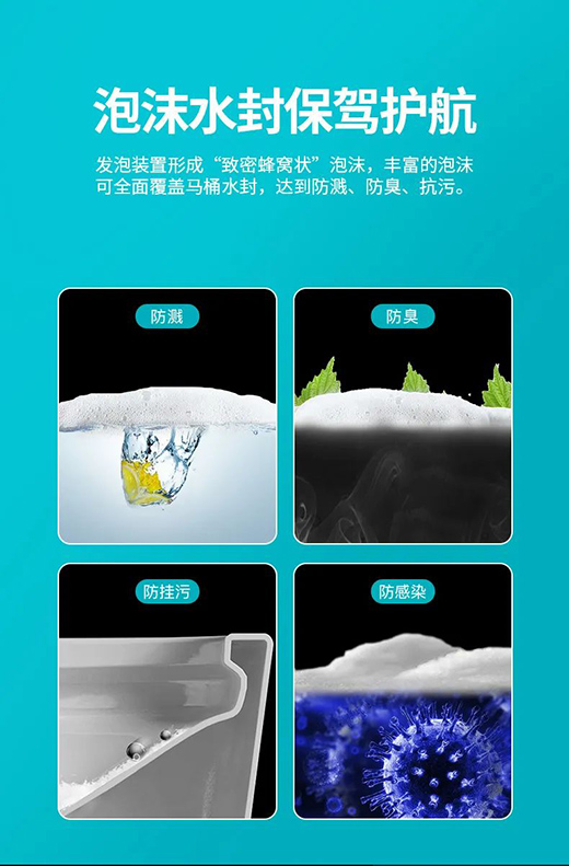 S9智能馬桶升級(jí)了一個(gè)神仙功能,就是泡沫盾,不僅可以防濺水,還能防臭防感染。綿密的泡沫層可以有效的把臭味和細(xì)菌隔離在泡沫之下,拉完臭臭還能暢快呼吸的衛(wèi)生間,就屬你家的啦~