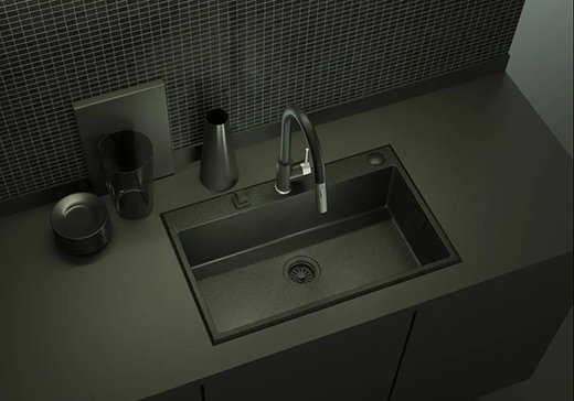 普樂美設(shè)計(jì)師從滿是繁星的夜空裁剪出一角,化為精巧的工藝品——黑金砂水槽,讓我們每一次進(jìn)入廚房,不管烹飪或洗碗,都能重溫孩時(shí)看見星辰大海的驚艷心情。
