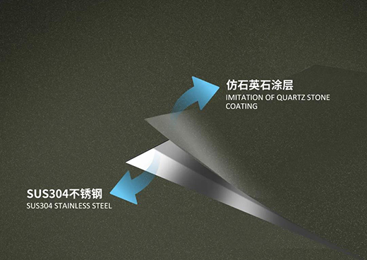 表面仿石英石涂層采用特殊工藝處理,還原天然石材磨砂質(zhì)感,手感舒適,莫氏硬度高達(dá)8H以上,不容易產(chǎn)生劃痕;涂層附著力強(qiáng),抗沖擊性能優(yōu)異,不容易掉落;耐酸耐堿,不易變色,不易沾污,日常保養(yǎng)方便;耐高溫,防凍裂,物理性能穩(wěn)定,高顏值持續(xù)在線。
