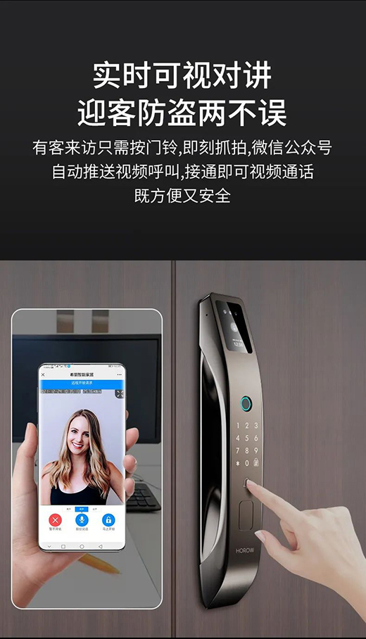 有朋友來家里做客,只需按下門鈴,主人手機就會收到微信公眾號自動推送,主人即可確認訪客身份,可以在鎖連接WIFI的情況下直接進行遠程開鎖,閨蜜好友上門暢通無阻。