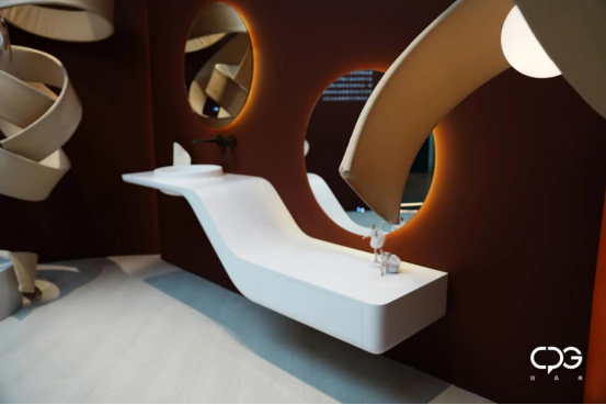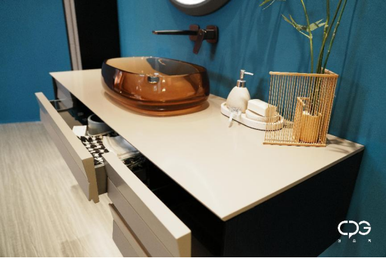 這次展示的部分新品浴室柜,更是以人造石+木材的形式來呈現CPG創品高全案衛浴的獨特美學。剛硬的人造石與溫潤的木,兩種截然不同的材質,結合多重技術和工藝,在CPG創品高全案衛浴的獨特設計下,展現出協調和諧的剛與柔的交融相依,在全新的角度下,勾勒出獨屬于CPG創品高全案衛浴的極簡美學。