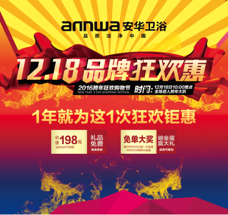 安華衛浴自成立以來,專注產品品質與售后服務十幾年,始終以推動衛浴文明進步為愿景,一直深受廣大消費者的喜愛。2016年安華衛浴陸續在全國各大省份舉辦全省聯動團購活動,創造了一次又一次的銷售佳績。本次北京年終促銷活動優惠勁爆:現場憑工廠直通卡簽到即可免費享受價值298元工廠豪禮,更有品牌家電等百萬豪禮免費大派送!