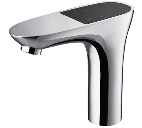 這款新式智能水龍頭,采用了常見的L型設計。水龍頭沒有采用以往的手動開關設計,為自動感應式。在水龍頭的上方,帶有一個可觸摸的液晶屏。在觸摸屏中,帶有直觀化的多種圖標,包括茶杯、水杯、高腳杯、茶壺、燒水壺等等。此外,還帶有數字選擇,用戶可以從10毫升到2000毫升的出水量之間進行選擇。這樣就可以確保水可以不被浪費。