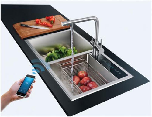 當然了,如果你為自己家的老人選用了這款凈水水槽,怕他們不會熟練使用的話,完全可以自己通過手機端智能APP來操控,通過APP監控管理系統,可以實現濾芯壽命監控、水質監控、網絡商城購買濾芯、濾芯沖洗、故障報警提示等多項智能功能,動動手指就能操控家里的水槽,想想也很帶勁呢!