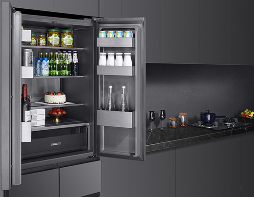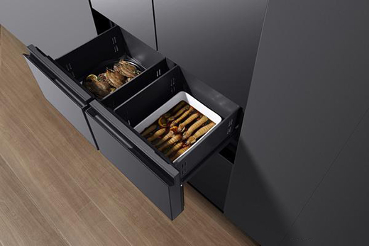 比如老板創造性地做了一個冷烹飪區域,可以讓中高端家庭實現專業化的冷烹飪;將嵌入式冰箱的厚度做到了580,將壓縮機移到頂部,做到453L的超大容量;內部置物架換成了航空鋁合金。