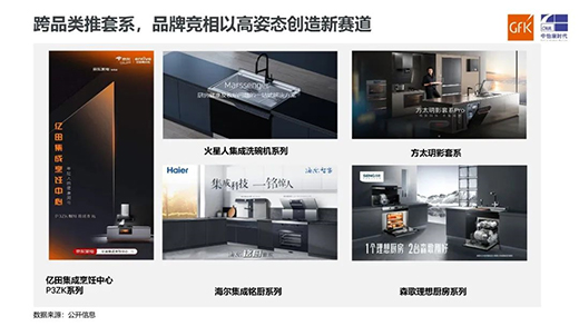 集成廚電昂揚向上的時候,缺少不了來自品牌們的大力投入?;鹦侨嗽缦韧瞥黾上赐霗C引領行業發展;方太在集成烹飪中心之后再次革新,推出大廚房套系,以玥影之名闖蕩江湖;億田推出集成烹飪中心系列,對集成廚電烹飪板塊(包括下排集成與上排集成)實現了全覆蓋;海爾作為家電龍頭也順勢推出了銘廚集成套系;森歌作為實力派,以理想廚房的名義激戰市場。