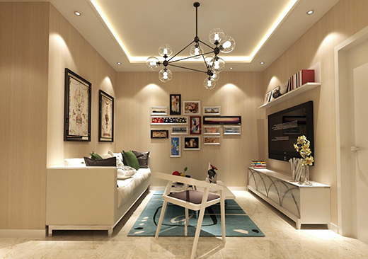 相比之下吊燈這樣選擇顯得非常華麗時尚,造型非常文藝時尚,使得客廳顯得更加時尚有立體感。客廳墻壁上采用淺藍色的格調,在客廳還裝飾了一組精美的射燈,使得室內顯得更加清爽自然。