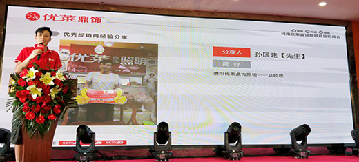 在隆重的頒獎儀式過后,優萊鼎飾照明請到了三位有著豐富實戰經驗的經銷商,與大家分享了他們的賣貨秘籍和經營歷程,讓現場每位經銷商頗有所獲,更是激起了他們奮勇向前的決心。