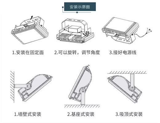 不僅如此,LUNO綠能照明極星系列投光燈還配備專業防水、強勁散熱的呼吸閥門,其卡扣固定安全可靠,可有效避免因水滴滲入而引起的漏電危險。同時,極星系列投光燈配備便于安裝的可旋轉穩固支架,大大方便了產品在安裝過程中進行有效的角度調整,可滿足墻壁式安裝、基座式安裝、吸頂式安裝多種角度需求。