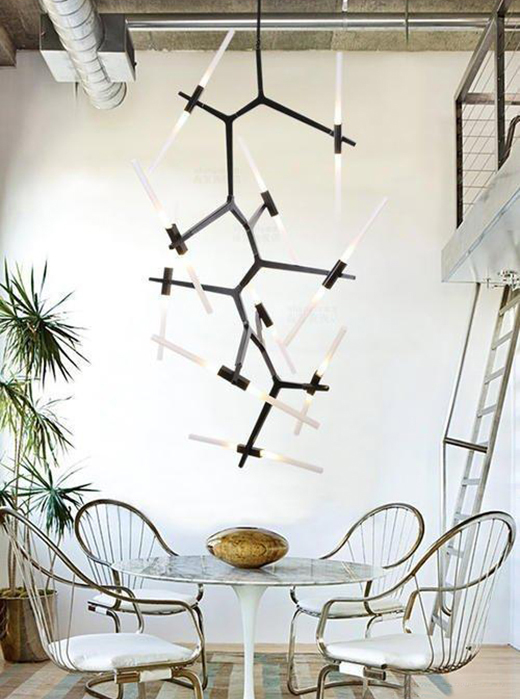 樹杈吊燈是手工制作的,外觀呈不規(guī)則的立體幾何結(jié)構(gòu),使用了鋁+亞克力的材質(zhì)。它線條清晰,銜接角也比較有立體感,即使在不發(fā)光時(shí),也能表現(xiàn)出時(shí)尚而又美觀的氣息。