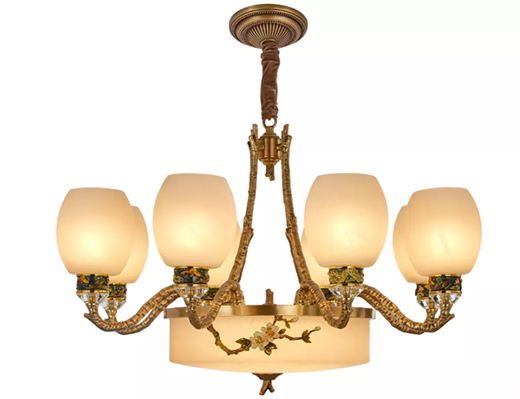 精雕細琢.至臻至美海棠歸系列是技術與造型藝術相結合的藝術品,在視覺效果上生動而親切,在功能上巧妙而實用采用工業專業H62黃銅,經久耐用且相對于其他材質更顯質感,仿玉玻璃燈罩的運用,性價比高。