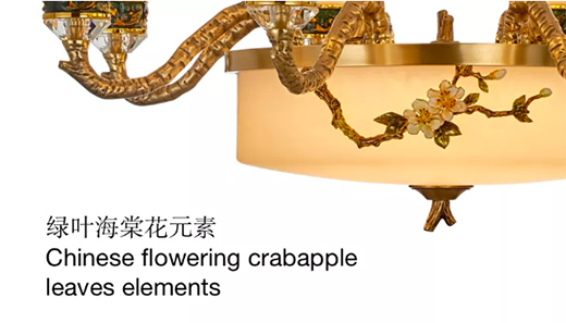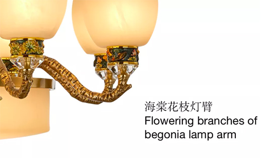融入海棠花元素,燈飾整體造型獨特,采用寫實工藝刻畫枝葉花瓣,栩栩如生