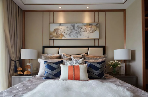 臥室燈具記得要采用令人放松的色調(diào),泛著暖色或中性色的照明基調(diào)會(huì)十分溫馨。也可以利用立燈、壁燈、結(jié)構(gòu)性照明燈等柔和光線,給自己創(chuàng)造一個(gè)舒適的休息氛圍。