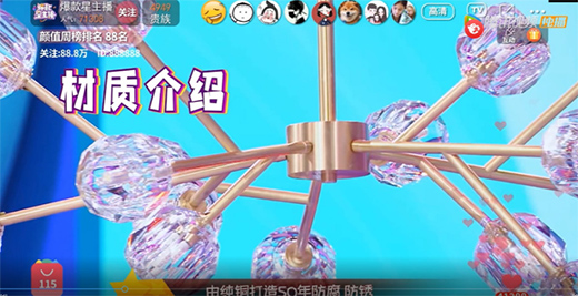 星主播王春輝花式帶貨,月影家居水晶燈成全場焦點