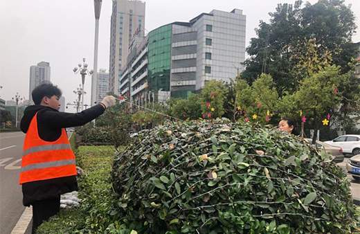 滿天星燈串裝扮道路兩旁綠化帶