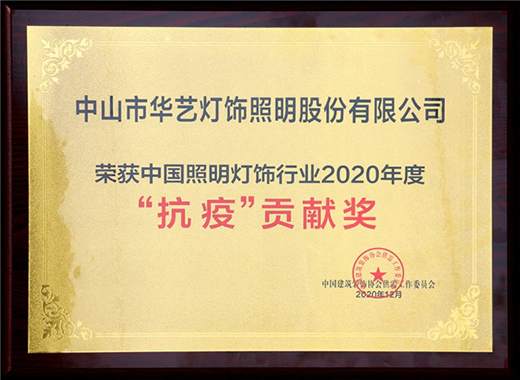 滄海橫流,方顯英雄本色!本屆評選除常規(guī)獎項外,為表彰2020年中積極投身“抗疫”事業(yè)的企業(yè),評委會特設(shè)“中國照明燈飾行業(yè)2020年度‘抗疫’貢獻(xiàn)獎”。其中,彰顯一片赤誠之心的華藝照明榮獲該特殊榮譽(yù)。