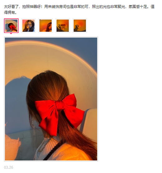這款網紅日落燈,是拍攝時尚大片的神器,深受廣大用戶的喜愛。它有日落紅、藍煙紫兩種色溫可調。日落紅恬淡溫柔,讓人像更加柔美動人;藍煙紫自帶冷感,增加人像的冷艷感和酷感。同時,拍出剪影氛圍感的照片也是分分鐘的事情,讓你化身朋友圈最具藝術感的那一位。