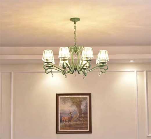 除了性能有保障以外,此款產(chǎn)品造型設(shè)計(jì)別出心裁,蘊(yùn)含“心意”。其采用華貴典雅的吊燈造型,運(yùn)用飽含時(shí)尚、古典、清新等多種氣息的綠色作為主色,神秘而雅致,帶來無窮的想象。主體部分,采用分散的枝丫設(shè)計(jì),蘊(yùn)含著開枝散葉、生生不息的美好寓意。鐵藝質(zhì)感,水晶吊墜,古典氣息撲面而來,看似是一盞燈飾,實(shí)則是充滿人文氣息的裝飾品。