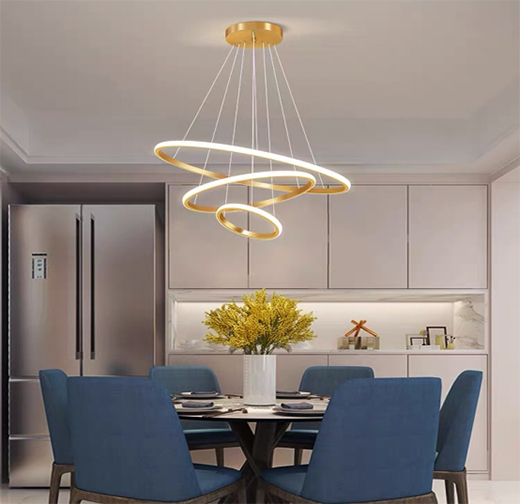 同時(shí),這款燈飾采用圓環(huán)設(shè)計(jì),踐行幾何藝術(shù),創(chuàng)造美感,成為單調(diào)、乏味生活中的“一抹光彩”。圓環(huán)邊采用金屬材質(zhì)打造,充滿高級(jí)感的金色與LED燈光,交相輝映,點(diǎn)綴整個(gè)空間。錯(cuò)落有致的鋼條,從視覺上拉伸空間,與不規(guī)則的圓環(huán),定義光影藝術(shù)。如此精巧的燈飾,如同藝術(shù)品一般,“點(diǎn)亮”所到之處。