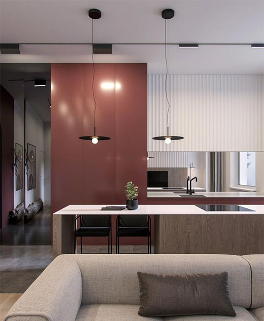 空間頂部采用無主燈設(shè)計時,會呈現(xiàn)一種留白的狀態(tài),擴(kuò)大空間在視覺上的效果。