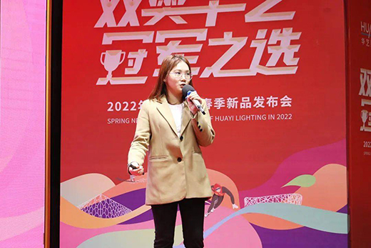 華藝照明品牌管理中心總監吳倩瑩帶來2022年品牌戰略的全面解讀,并正式官宣了華藝照明“高端燈飾照明引領者”的全新品牌定位。