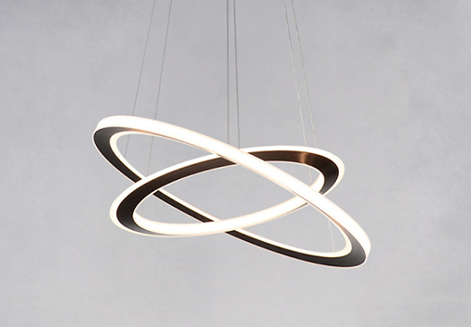 新特麗燈很多都是原創設計,例如新特麗的啟元系列吊燈,其使用了獨特的三角圓環設計,猶如浩瀚宇宙中的飛碟,在設計上使用內外發光設計,同時擁有外窄內寬、外寬內窄設計。