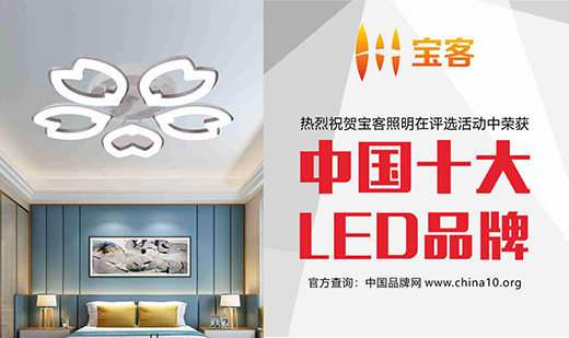 如此一家有實力、有行動力、有遠見的品牌怎能叫消費者不鐘愛有加呢?因此,在最新一期的“中國十大品牌”評選活動中,寶客照明當仁不讓地從萬千品牌中脫穎而出,坐擁“中國十大照明品牌”、“中國十大LED品牌”兩大寶座!