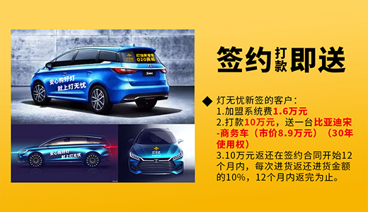 在本次“利和燈博中心美燈嗨購節”上,燈無憂平臺匯聚八方資源,隆重開啟“夏季訂貨招商會”,為經銷商、消費者謀取更多福利!在活動期間,下單訂貨便有機會獲得最高100%的讓利、500元當108888元使用;更有機會獲得奔馳、寶馬的使用權以及金條!此外,在本次活動期間選擇加盟燈無憂的有志之士還能獲得燈無憂的加盟系統費用1.6萬元;打款10萬元及以上便能獲得比亞迪宋-商務車30年的使用權!