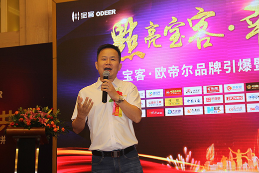 嘉賓致辭結束之后,程曉星再次走上講臺,發表了《寶客新三年,品牌新征程》的主題演講。他在演講中簡單回憶了企業的發展歷程,表達了將客戶變成事業合作伙伴的愿望,并介紹了企業將通過產品再造、品牌再造、團隊再造、模式再造四個方面三年再造新寶客的發展規劃。