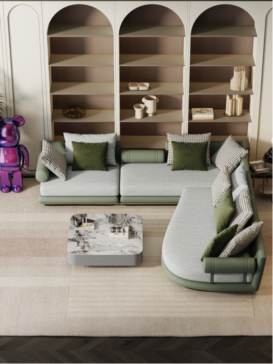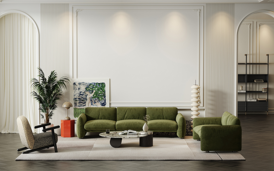 淺綠色系是意式裝飾中的傳統(tǒng)色系。洛品這套布藝沙發(fā)從自然環(huán)境中汲取靈感,通過借鑒戶外的調色板為溫馨宜人的空間做點綴,意式極簡大理石茶幾充當“客廳顏值擔當”,讓客廳散發(fā)出優(yōu)雅的氣息。柔和的垂柳綠色、沙色和銀灰色的大地色調將外部景觀引入室內,讓春日色彩在室內綻放光芒。