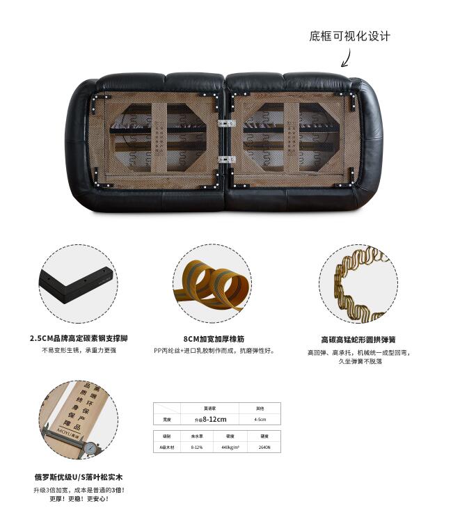 在底框設計上,MOYU莫語同樣不遺余力。通過選用俄羅斯優級U/S落葉松實木框架,搭配橡筋和蛇形彈簧,在保證底框彈性的同時,也確保了其耐用性。而底框的「可視化設計」,更是將莫語的匠心獨運展現得淋漓盡致,每一次開箱,消費者都能直觀感受到底框內部的優美結構,這不僅是對品質的自信展示,也是對消費者知情權的尊重。