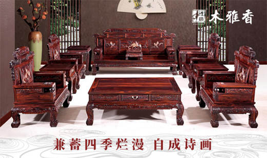 木雅香企業擁有高級先進的烘干處理設備,執行國際化標準的生產管控規范,通過從生長環境、年輪、密度、顏色、氣味、紋理、柔韌性等維度建立一整套甄選標準來確認采用質好耐久的家具原材。秉持嚴謹的態度,木雅香所打造的印尼黑酸枝家具品質上乘,放置時間愈長,木色會漸漸變深,變成深棗紅色至紫紅色,更顯典雅大氣,收藏價值更高,其正宗木質散發的酸香味可以避免蟲蛀蟲害,使得家具原貌久經歲月依然美好如初。