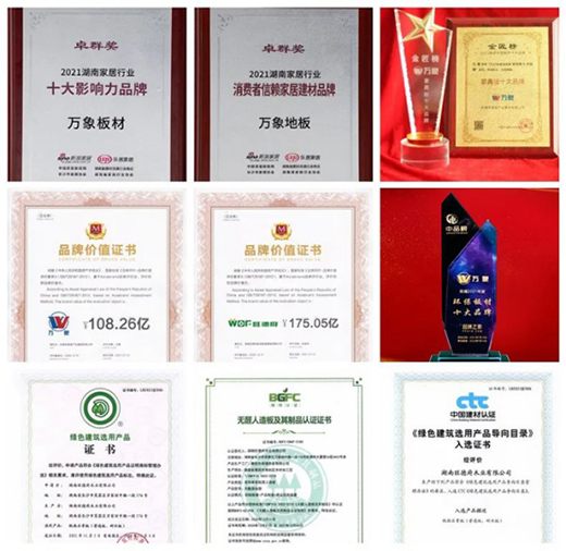經過23年的自立自強與艱苦奮斗,萬象品牌憑借過硬的環(huán)保品質、絕對的行業(yè)領導地位、良好的市場口碑,連續(xù)多年斬獲“中國影響力品牌”、“中國十大板材品牌”、“中國十大工程板品牌”、“中國十大健康板品牌”、“中國環(huán)境標志產品認證”、“家具板十大品牌”、“環(huán)保板材十大品牌”、“阻燃板十大品牌”、“全國綠色建材品牌”、“全國工程建設百強企業(yè)供應商”等多項榮譽稱號,為品牌實力加冕。回首23年的艱苦奮斗,心存感激,熱淚盈眶。展望未來的宏偉藍圖,初心不改,再續(xù)輝煌!