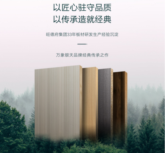 秉持旺德府集團“為社會創享健康美好的居辦環境”這一偉大愿景,萬象銀天響應社會需求,深耕環保板材,在推出系列ENF級國標環保產品的同時,也積極探索家居美學之道,推出系列新花色,為消費者打造時尚健康家居生活提供豐富選擇。