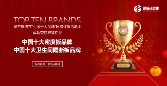 榮譽方面,康諾板業在2023年榮獲“中國十大密度板品牌”和“中國十大衛生間隔斷板品牌”兩大榮譽,這是對我們專業度的認可。同時,我們攜手央視及各大網絡媒體平臺,線上線下同步推廣,讓更多人感受到康諾板業引領潮流的品牌理念和非凡產品魅力!