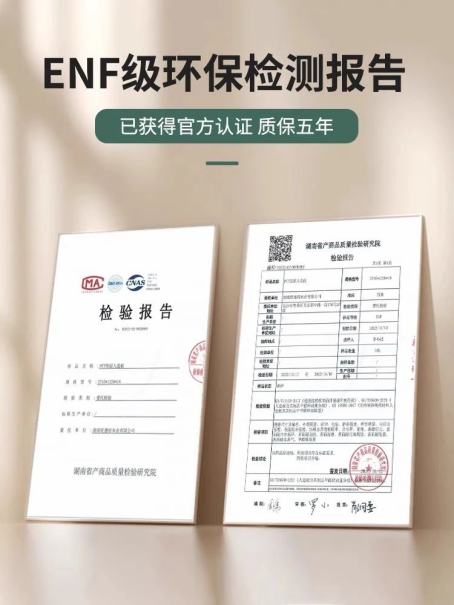 ·環保認證:ENF級安全守護板材環保標準達國家最高等級ENF 級(甲醛釋放量≤0.025mg/m3),經權威機構檢測認證,遠超國標E0級標準,即使在密閉空間也能保障室內空氣質量,讓家居生活更安心。