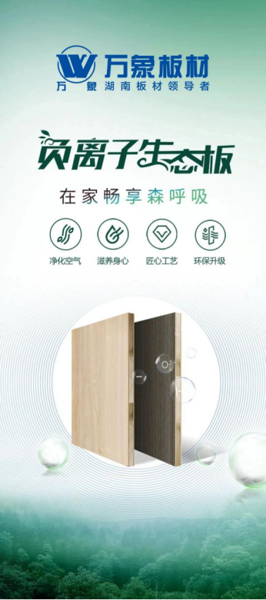 萬象負離子杉木芯生態板,以自然科技重塑健康家居。基于負離子技術的裝飾材料,通過添加天然礦物電氣石原材料形成負離子發生劑,讓板材表面誘生大量負離子,從而凈化室內空氣,降低室內空氣中懸浮塵埃顆粒,給人一種在大自然呼吸的感覺,特別適用于孕婦、老人、小孩的居住空間。