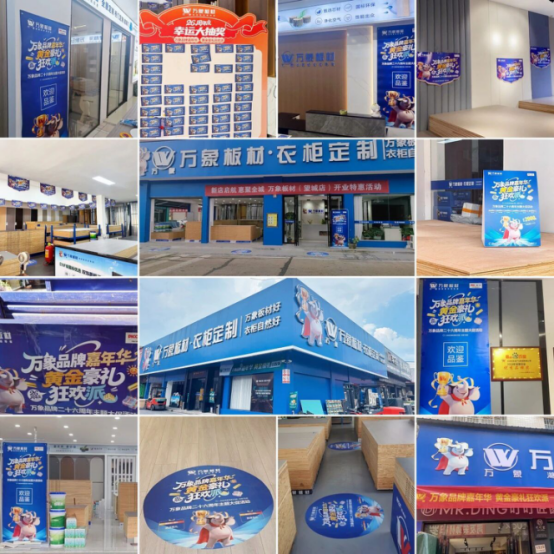 萬(wàn)象板材終端門(mén)店啟動(dòng)全方位煥新計(jì)劃,以“視覺(jué)吸睛+體驗(yàn)沉浸”為核心,打造層層遞進(jìn)的慶典場(chǎng)景,讓?xiě)c典氛圍滲透空間每一個(gè)角落。顧客在感知慶典喜悅的同時(shí),獲得更舒適的消費(fèi)體驗(yàn)。