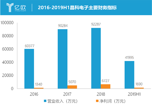 2016-2019H1晶科電子主要財務指標